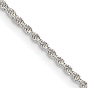 A classic rope chain features twisted links woven together in a spiral design that offers strength, integrity and elegance all in one. This one is made of polished sterling silver, which is perfect for displaying lightweight charms or pendants. It closes with a spring ring clasp and is approximately 1.5mm in width by 22-inches in length.