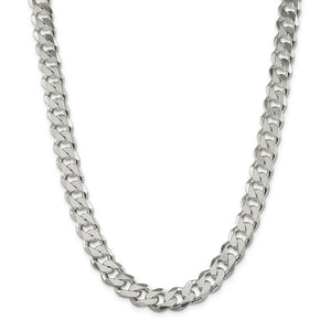 An array of sterling silver solid curb links join together to create the sleek style for this 11mm width, 26-inch long necklace chain that closes with a lobster-claw clasp. It features a solid link construction with a flat profile and a gleaming, polished finish.