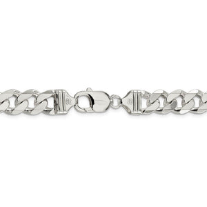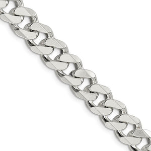 An array of sterling silver solid curb links join together to create the sleek style for this 11mm width, 28-inch long necklace chain that closes with a lobster-claw clasp. It features a solid link construction with a flat profile and a gleaming, polished finish.