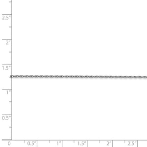 Classic appeal with a modern design, this solid-link cable rope chain created from polished rhodium-plated 10k white gold is finished with a spring-ring clasp and perfect for displaying lightweight charms or pendants. This thin delicate necklace chain is 0.7mm in width by 16-inches in length.