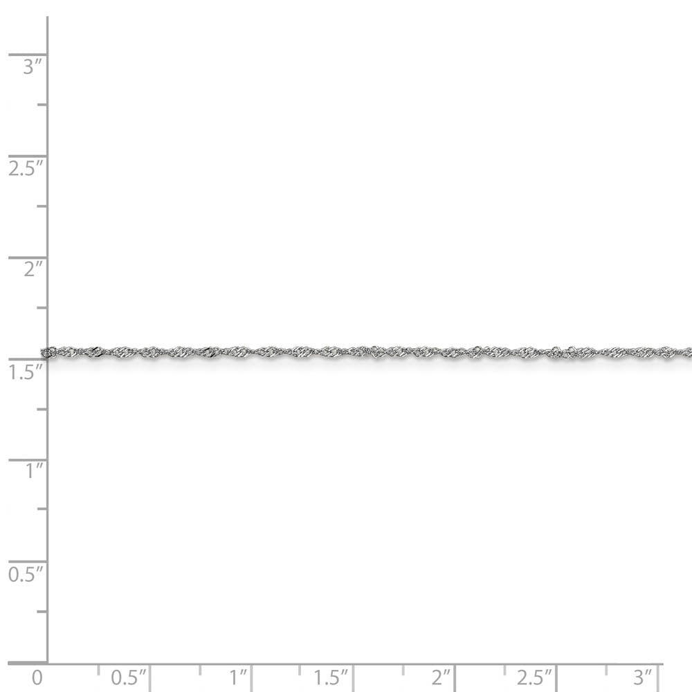 Twisting links of rhodium-plated 14k white gold form a distinctive feminine design that will add unexpected shimmer to your ensemble thanks to its diamond-cut styling. This 1.1mm width Singapore chain features a solid link construction and closes with an easy to use spring ring clasp. 16 inches in length.