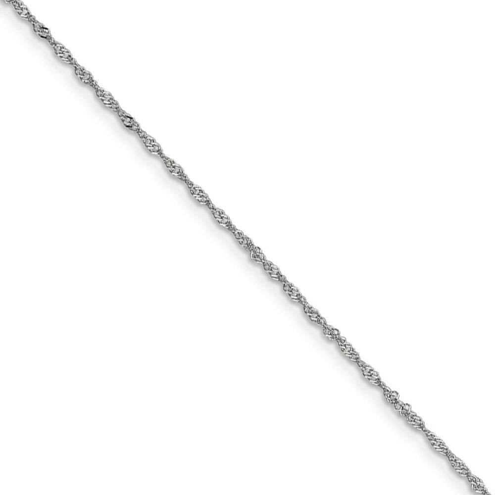 Twisting links of rhodium-plated 14k white gold form a distinctive feminine design that will add unexpected shimmer to your ensemble thanks to its diamond-cut styling. This 1.1mm width Singapore chain features a solid link construction and closes with an easy to use spring ring clasp. 20 inches in length.
