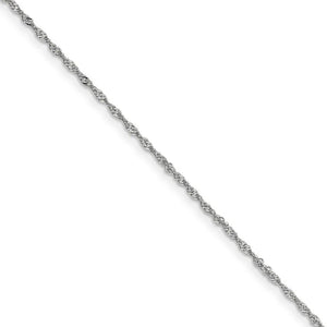 Twisting links of rhodium-plated 14k white gold form a distinctive feminine design that will add unexpected shimmer to your ensemble thanks to its diamond-cut styling. This 1.1mm width Singapore chain features a solid link construction and closes with an easy to use spring ring clasp. 14 inches in length.