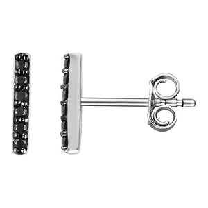 1.5 x 8.6mm 14k White Gold 1/10 CTW (I2) Black Diamond Bar Earrings - Black Bow Jewelry Company