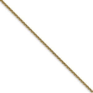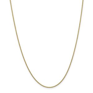 A simple, alternating pattern of tiny round links join together to create a classic cable chain made of gleaming 10k yellow gold. The delicate supple design of this 1.5mm width chain closes with a lobster claw clasp.