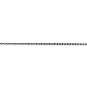 This beautiful chain intricately woven from rhodium-plated 14k white gold features a solid link, Parisian wheat pattern with a smooth polished finish. Crafted in the USA, this delicate 1.5mm width bracelet chain comes complete with a lobster-claw clasp for a reliable fit. inches in length.