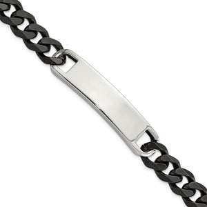 11mm Stainless Steel & Black Plated Curb Link I.D. Bracelet, 8.5 Inch