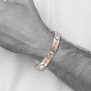 11mm Stainless Steel & CZ Brushed & Rose Plated Link Bracelet, 8.5 In