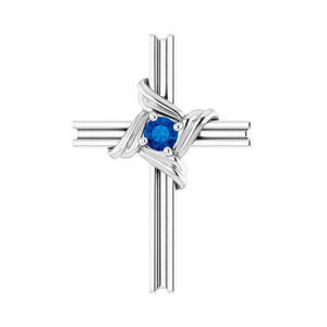 Celebrate and honor all special occasions with jewelry of religious significance! Our collection of spiritually inspired designs that show faith, hope and devotion are perfect for commemorating life's milestones. This polished women's cross pendant created in rhodium-plated 14k white gold is prong set with a .08 carat genuine blue sapphire that is 2.5mm in size. The approximate pendant size is 13mm (1/2 inch) in width by 18mm (11/16 inch) in length. The chain passage dimensions of the hidden bail are 1.5 x 1.2mm. Color range varies on all natural stones so please allow for slight variations in shades (medium navy to royal blue). The color on your screen may also not reflect actual gemstone color due to variations in monitors. Gemstone treatment: traditional heated process. This item does not include a chain. This is a made to order item and is estimated to ship in about 12 days. Please email service@theblackbow.com for more details.