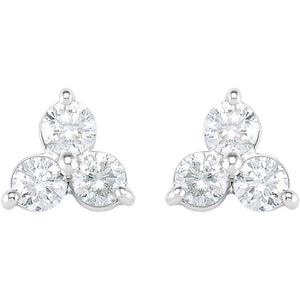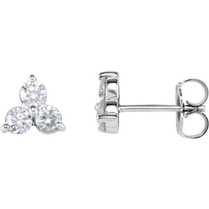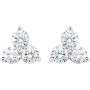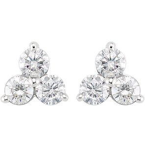 • Tie the meaning to the moment with a classic or unusual earring that makes it personal, thoughtful, or meaningful. These 3-stone post earrings crafted in rhodium-plated 14k white gold features prong set round genuine diamonds that are I1 in clarity and G-H in color. This 1.0 ctw pair is approximately 10mm (3/8 inch) in width by 9mm in length. This is a made to order item and is estimated to ship 11/27/2025