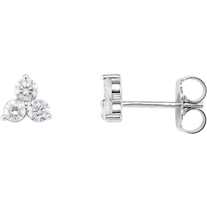 • Tie the meaning to the moment with a classic or unusual earring that makes it personal, thoughtful, or meaningful. These 3-stone post earrings crafted in rhodium-plated 14k white gold features prong set round genuine diamonds that are I1 in clarity and G-H in color. This 5/8 ctw pair is approximately 7mm (1/4 inch) in width by 6.5mm in length. This is a made to order item and is estimated to ship 11/27/2025