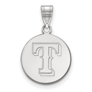 14K White Gold MLB Texas Rangers Medium Letter T Disc Pendant - Black Bow Jewelry Company