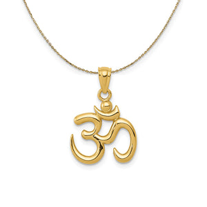 14k Yellow Gold 2D Om Symbol Necklace - Black Bow Jewelry Company