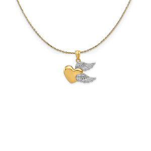 14k Yellow Gold and Rhodium Two Tone Heart with Wings Necklace
