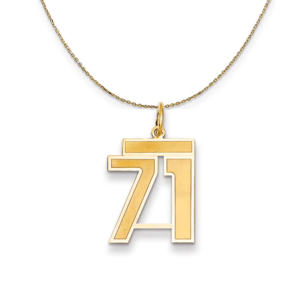 Celebrate your favorite sports player, lucky number or milestone date in your life with a prominent 14 yellow gold charm. Each laser-cut satin and polished number is approximately 14mm (9/16 inch) in length, which is finished with a 3mm top bar and classic jump ring. The pendant is . Includes a 30 Inch, 0.8mm 14k yellow gold cable chain with a lobster clasp.