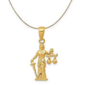 14k Yellow Gold Lady of Justice with Scales Necklace