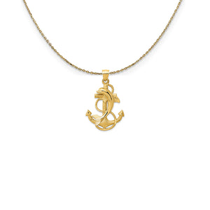 14k Yellow Gold Large Anchor with Dolphin Necklace