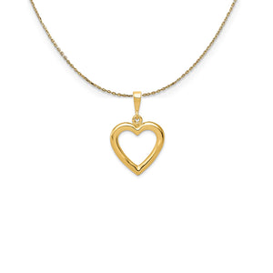 This classic puffed heart pendant fashioned from polished 14k yellow gold is finished with a standard tapered bail that easily slips onto a necklace chain of your choice. This heart measures approximately 20mm and features a hollow 3-D design. Includes a 16 inch long, 0.9mm wide, solid 14k yellow gold cable chain with a spring ring clasp.