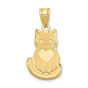 14k Yellow Gold Polished & Laser Cut Engravable Cat Pendant, 13 x 25mm