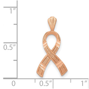 Be supportive and spread awareness for each person touched by breast cancer with a pink ribbon pendant. This satin and diamond-cut 14k rose gold charm is approximately 12mm (7/16 Inch) in width by 22mm (7/8 Inch) in length, which includes the bail. Made in the U.S.A. Chain not included.