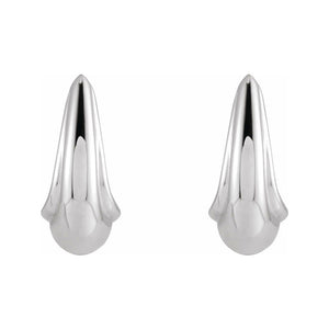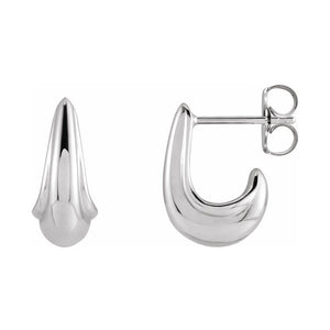 Flattering and versatile, these small polished J-hoop earrings made of rhodium-plated 14k white gold feature a tapered, hollow design that is approximately 6mm (1/4 inch) in width by 10mm (3/8 inch) in length. Friction backs included. This is a made to order item and is estimated to ship in about 12 days. Please email service@theblackbow.com for more details.