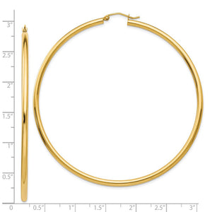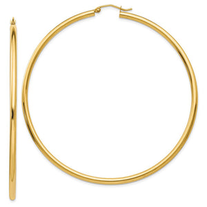 2.25mm x 70mm 14k Yellow Gold Polished Round Hoop Earrings