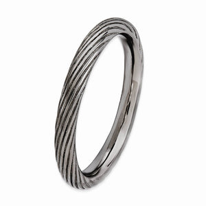 • Make it simple and stylish with stackable bands of different textures, finishes, widths and colors! This black ruthenium plated sterling silver band features a diagonal textured design with a polished finish that measures 2. Mm wide. Guaranteed to fit together perfectly with all of the mix and match Stackable Expressions rings.