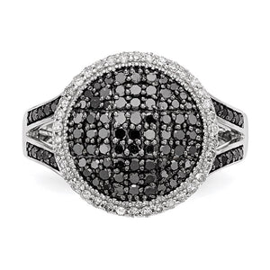 3/4 Ctw Black & White Diamond 15mm Round Ring in Sterling Silver
