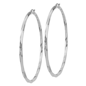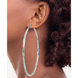 Do the Twist! These gorgeous rhodium plated sterling silver earrings feature a twisted design that casts a brilliant shine. The hollow tube construction measures 3mm thick and offers lightweight comfort.