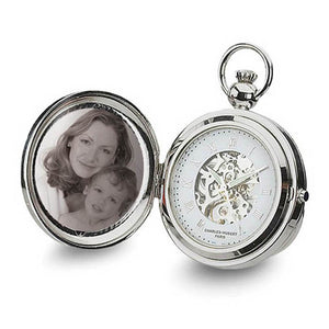 Charles Hubert Chrome Finish Brass Photo Insert 48mm Pocket Watch
