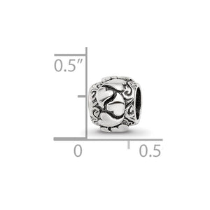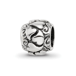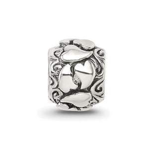 Hearts are perfect for any occasion and ideal for designing a romantic or loving theme. Created from sterling silver with a popular, dual finish, this barrel charm measures approximately 7 x 8.5mm with a 4mm core. All of our charms are interchangeable as well as compatible with Reflections and other popular 3mm width bead style bracelets and necklaces.