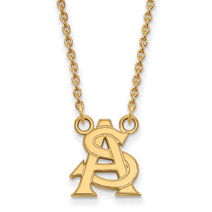 If you are a fan of Arizona State University and the Sun Devils then you need to show your school spirit with this Arizona State University necklace. We are a certified retailer and this authentic item is officially licensed. It is crafted from 14k Yellow Gold and crafted in the USA. 18 inches in length. This item is not currently in-stock. Once you place your order, please allow us 5 to 7 business days to make it for you.