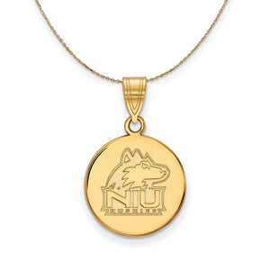 If you are a fan of Northern Illinois University and the Huskies then you need to show your school spirit with this Northern Illinois University pendant. We are a certified college jewelry retailer and this authentic item is officially licensed. It is crafted from 14k Yellow Gold and crafted by LogoArt in the USA. Includes a 24 inch, 0.8mm 14k yellow gold cable chain with a lobster clasp.