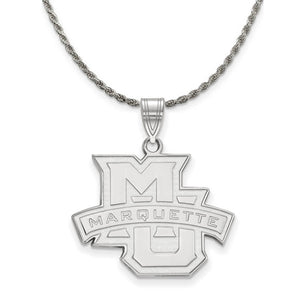 If you are a fan of Marquette University and the Golden Eagles then you need to show your school spirit with this Marquette University pendant. We are a certified college jewelry retailer and this authentic item is officially licensed. It is crafted from Sterling Silver and crafted by LogoArt in the USA. Includes a flexible and strong diamond cut rope chain. This stunning chain is 2.25mm in width, 18 inches in length and features a sturdy lobster claw clasp. The chain is crafted in Italy.