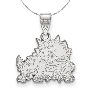 If you are a fan of Texas Christian University and the Horned Frogs then you need to show your school spirit with this Texas Christian University necklace. We are a certified college jewelry retailer and this authentic item is officially licensed. It is crafted from Sterling Silver and crafted by LogoArt in the USA. Includes a 20 Inch, 1.25mm sterling silver franco chain.