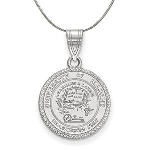 • If you are a fan of The University of Illinois and the Fighting Illini then you need to show your school spirit with this University of Illinois necklace. We are a certified college jewelry retailer and this authentic item is officially licensed. It is crafted from Sterling Silver and crafted by LogoArt in the USA. Includes a 20 Inch, 1.25mm sterling silver franco chain.