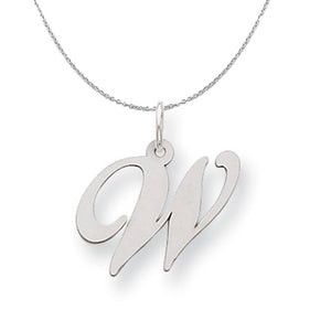 Indulge in a traditional initial charm that subtly enhances and personalizes your jewelry. Each fancy script letter is approximately 16mm (5/8 Inch) in length, fashioned from sterling silver with a high polished finish and includes a standard jump ring. Includes a 16 inch, 1.25mm sterling silver chain with a lobster clasp closure.