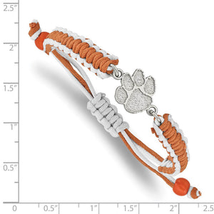Stainless Steel Clemson University Adj. Nylon Cord Bracelet, 9 Inch