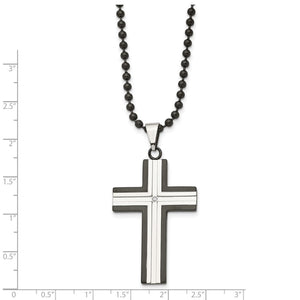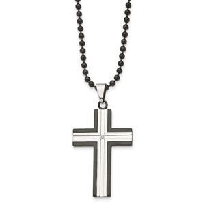 Stainless Steel & CZ Polished & Black Plated Cross Necklace, 30 Inch