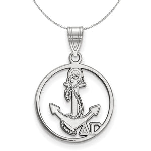 Show your greek life spirit with this Delta Gamma Sorority pendant necklace. It is crafted with rhodium plated sterling silver and without the bail is 19mm in height and 18mm in width (0.75 in x 0.71 in). With the bail, the measurements are 25mm in height and 18mm in width. We are a certified LogoArt retailer and this authentic item is licensed by the Delta Gamma Sorority and Greek Life. This pendant necklace is made the USA. Includes a 20 Inch, 1.25mm cable chain.