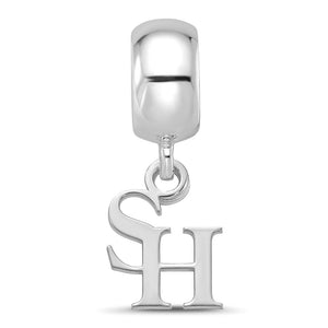 Show your school spirit with this Sam Houston State University dangle bead charm. It is crafted from rhodium plated sterling silver and measures approximately 10mm in width by 22mm in length. We are a certified retailer and this authentic item is officially licensed. It is compatible with most major brand, 3mm width, bead style bracelets and necklaces. Made in the U.S.A.