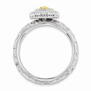 Create a look that is all your own with a fun assortment of rings that looks great alone or stacked in a collection to express your own unique style. This textured ring fashioned from tarnish resistant rhodium plated sterling silver features a 12 x 9mm oval top with a yellow gold-tone plated center and a 2. Mm width band. Guaranteed to fit together perfectly with all of the mix and match Stackable Expressions rings.