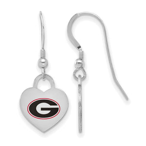 Sterling Silver University of Georgia Enamel Heart Dangle Earrings - Black Bow Jewelry Company