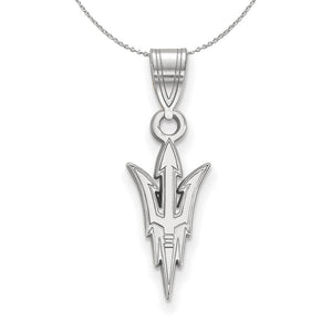• If you are a fan of Arizona State University and the Sun Devils then you need to show your school spirit with this Arizona State University necklace. We are a certified college jewelry retailer and this authentic item is officially licensed. It is crafted from Sterling Silver and crafted by LogoArt in the USA. Includes a 20 Inch, 1.25mm cable chain.