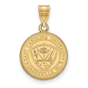 14k Gold Plated Silver East Carolina U Medium Crest Pendant - Black Bow Jewelry Company