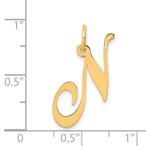 14k Yellow Gold, Ella Collection Medium Fancy Script Initial N Pendant