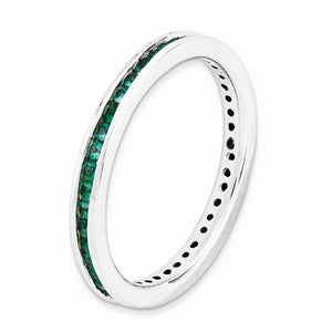 Timeless style! Vibrant created emeralds are channel set in rhodium plated sterling silver all the way around this 2. Mm eternity synthetic gemstone band. Guaranteed to fit together perfectly with all of the mix and match Stackable Expressions rings.