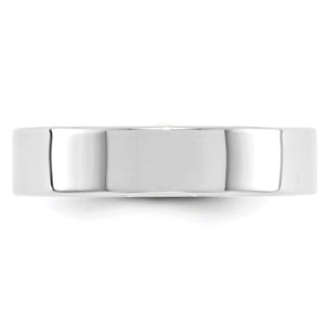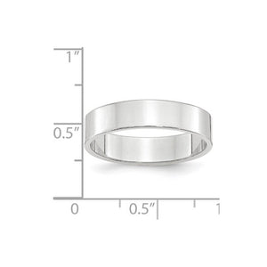 A sleek contemporary style band created in rhodium-plated 10k white gold with a polished finish. This unisex band features a flat profile, a standard fit shank, is approximately 1.2mm in thickness (lightweight), and 5mm in width. Suitable for engraving. Made in the U.S.A. This is a made to order item and is estimated to ship 12/26/2025
