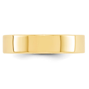 A sleek contemporary style band created in polished 10k yellow gold. This unisex band features a flat profile, a standard fit shank, is approximately 1.2mm in thickness (lightweight), and 5mm in width. Suitable for engraving. Made in the U.S.A. This is a made to order item and is estimated to ship 12/26/2025