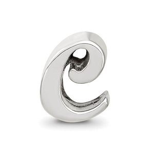 Sterling Silver Script Style, Letter C Bead Charm - Black Bow Jewelry Company